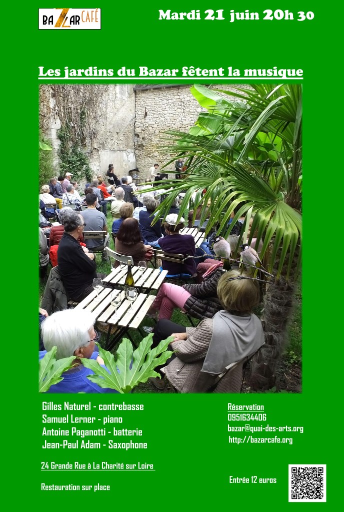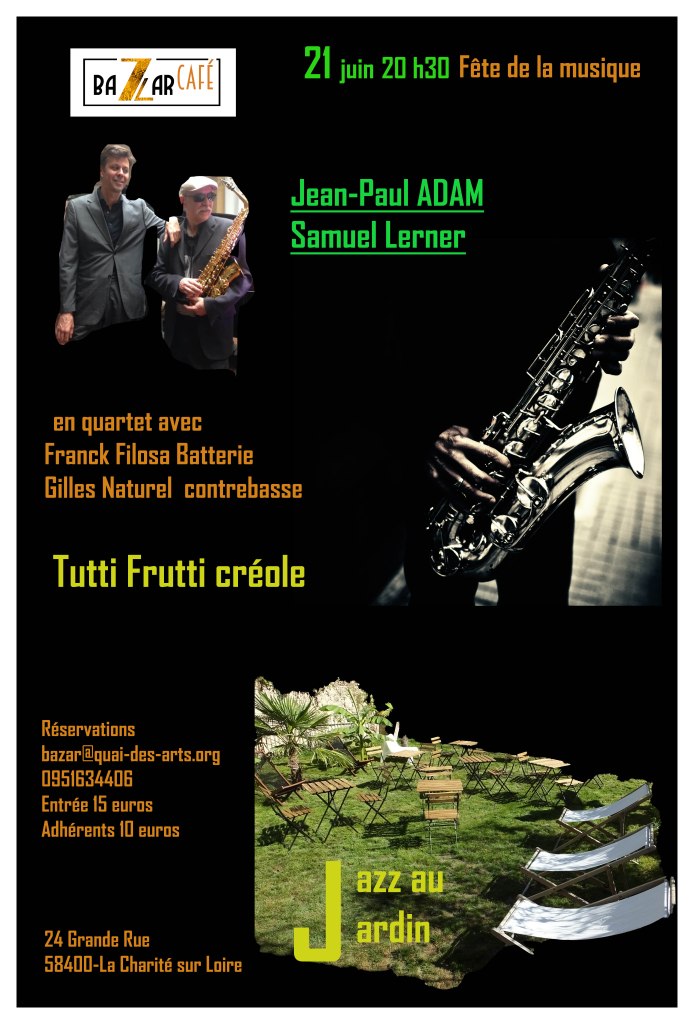 Quoi de mieux que le jazz inspiré de la Caraïbe et des musiques créoles pour fêter le solstice d’été? C’est ce que nous proposons dans les jardins du Bazar Café le 21 juin à 20h 30 à l’occasion de la fête de la musique. Ce sera la première édition de notre cycle Jazz au Jardin, initié par un grand J, Jean-Paul Adam et son quartet de Jazz composé de Samuel Lerner au piano, Gilles Naturel (ne le chassez pas, il revient au galop)à la contrebasse et Franck Filosa à la batterie. Je vous le dis, l’été sera show, show, show!