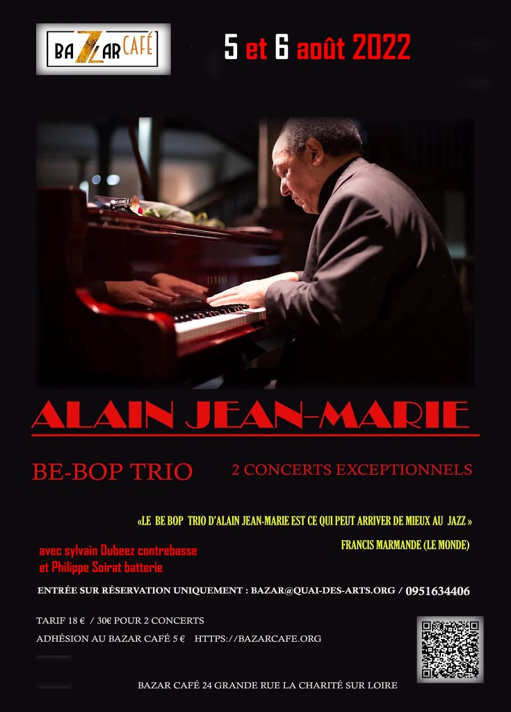 Il suffit de lire la liste impressionnante des prix remportés par Alain Jean-Marie dont le critique de jazz du journal Le Monde, Francis Marmande, affirme qu’il est le plus grand pianiste de jazz de France pour comprendre que ces deux concerts que présente le Bazar Café les 5 et 6 août sont des concerts exceptionnels. Prix Django-Reinhardt 1979/ Prix Boris-Vian de l’Académie du jazz 2000/ Djangodor du « Meilleur musicien français de jazz 2000/ Coup de cœur Jazz et Blues 2019 de l’Académie Charles Cros/2020 : Prix du disque français pour Interplay, avec Diego Imbert